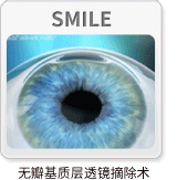 原理:通過(guò)飛秒激光在角膜基質(zhì)層制作基質(zhì)透鏡,再經(jīng)一個(gè)形如微笑的微型切口取出透鏡。