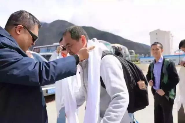 西藏當(dāng)?shù)匦l(wèi)生健康委領(lǐng)導(dǎo)為陳偉主任獻(xiàn)哈達(dá)