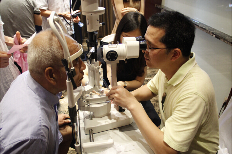 白內(nèi)障專家現(xiàn)場(chǎng)為患者免費(fèi)查眼