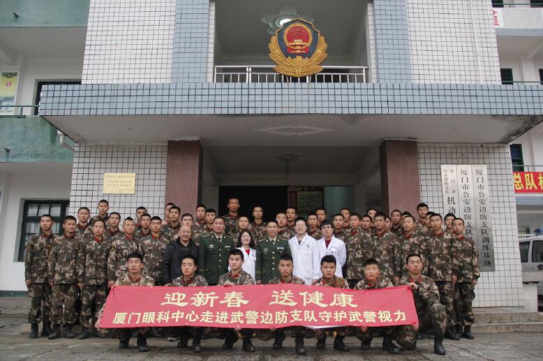 1月29日下午,廈門眼科中心眼表與角膜病專家一行9人冒著冬雨到翔安武警邊防支隊機動大隊,開展“迎新春 送健康”健康咨詢、義診活動,并為邊防支隊武警贈送了進口眼藥水。廈門眼科中心以實際行動提前為武警邊防支隊致以新春祝福與問候,并送去了健康。義診現(xiàn)場氣氛十分熱烈,義診從下午三點半一直持續(xù)到下午六點,為近百名武警做了眼體檢。
