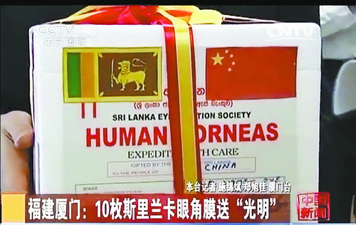 中央電視臺4套中文國際報道《10枚斯里蘭卡眼角膜送“光明”》
