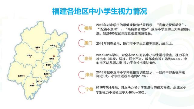 寧德也是去年做了一次兩萬個小學(xué)生的篩查,發(fā)現(xiàn)小學(xué)生視力不良檢出率是40%到50%。