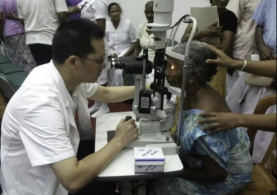 ▲毛祖紅主任為外國(guó)友人進(jìn)行白內(nèi)障檢查