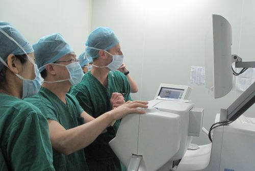 ▲張廣斌院長為患者做飛秒白內(nèi)障手術(shù)