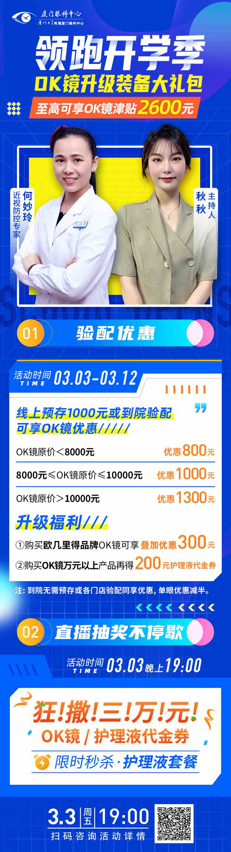 ②活動(dòng)期間(3.3-3.12)到院驗(yàn)配無(wú)需預(yù)存,同享優(yōu)惠;③預(yù)存顧客驗(yàn)配截止日期:3月31日。