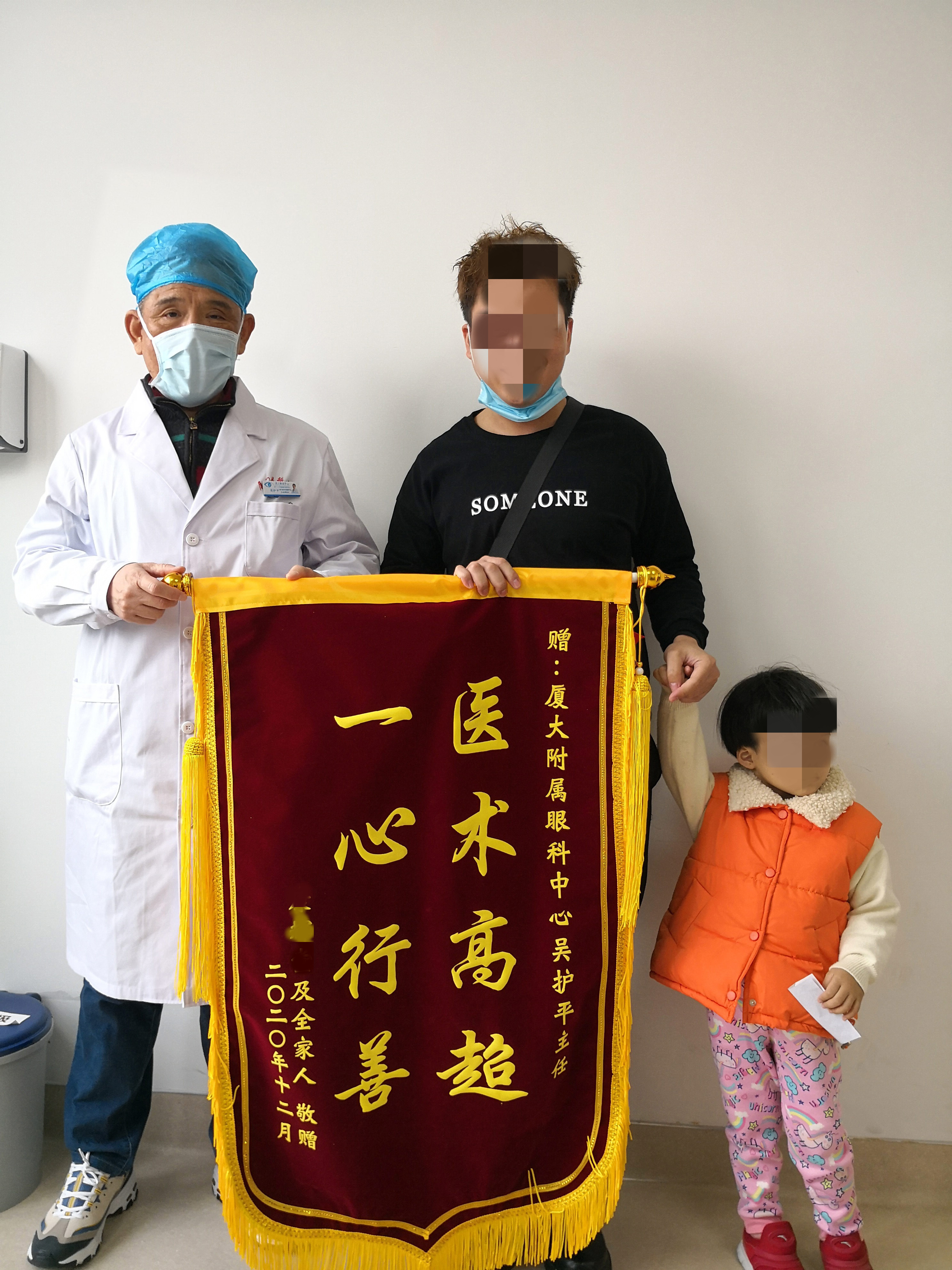 再到復(fù)查的時候,小可右眼已經(jīng)基本恢復(fù)正常,各項功能都無異樣。小可的爸爸特地為吳護(hù)平教授送來的錦旗,他告訴我們:“孩子沒事了,吳主任救了孩子的眼睛,我實在太感謝了,在住院那一周,吳主任每次來查房總是特別用心,今天我陪孩子來復(fù)查,想著一定要表達(dá)下我的感謝。”