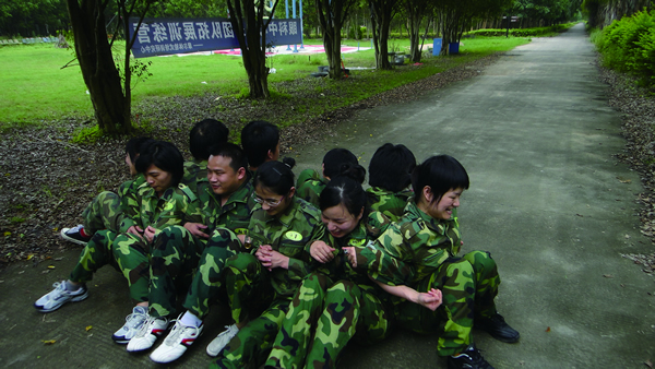 一開始大家沒有掌握到這項訓(xùn)練實質(zhì)上的意義,只是一味想著自己要站起來,結(jié)果無論是我們的“勇者無敵隊”還是“必勝莊園隊”都以失敗告終。要么剛站起來一半,就被旁邊的伙伴拉下去了;要么根本就找不到支點(diǎn),沒辦法起來;要么已經(jīng)站起來了,還有伙伴沒有同時起來,仍然視為失敗。
