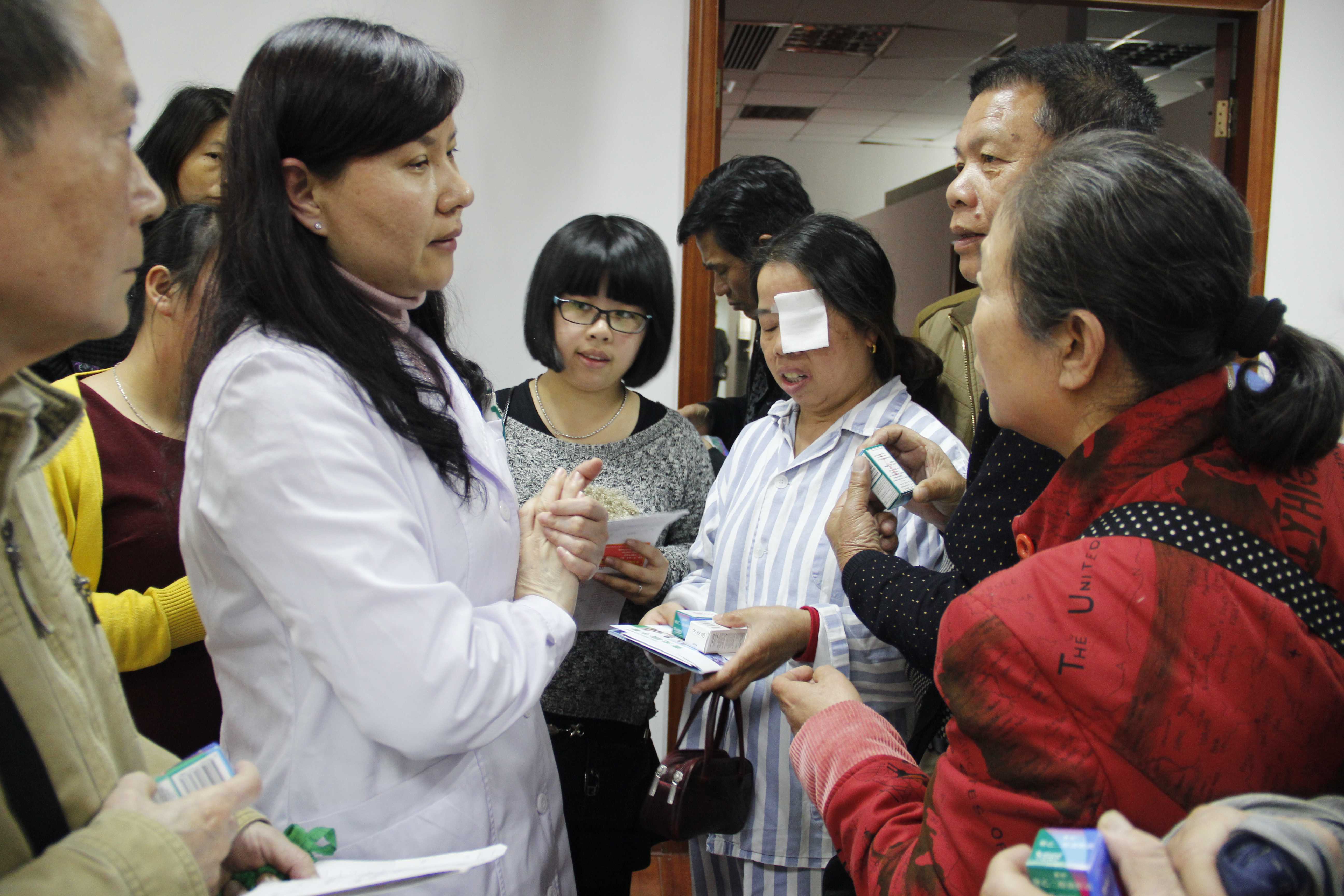 科室曾來了一個(gè)外地打工的18歲小姑娘,父母近親結(jié)婚導(dǎo)致她的身體狀況欠佳,因?yàn)榧彝ソ?jīng)濟(jì)拮據(jù),并未及時(shí)得到治療,直至雙眼視物逐漸模糊、變黑她才到醫(yī)院就診。經(jīng)檢查,小姑娘晶體脫位并患有繼發(fā)青光眼,雙眼都需要手術(shù),但昂貴的手術(shù)費(fèi)他們無(wú)法承受。為了能讓小姑娘順利完成青光眼引流釘手術(shù),王玉宏為她聯(lián)系了慈善機(jī)構(gòu),并發(fā)動(dòng)科室人員為她們一家捐贈(zèng)財(cái)物。由于青光眼具有家族遺傳的性質(zhì),在她的妹妹身上也檢查出青光眼,但還沒有那么嚴(yán)重,王玉宏也免費(fèi)為她妹妹提供藥物治療。多年來,青光眼科室精湛的醫(yī)療技術(shù)和善舉贏得了患者和家屬的好評(píng),更有不少患者慕名其拿來就診。