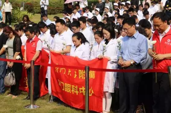 藍(lán)天下,清風(fēng)徐來(lái),菊香陣陣。4月4日上午,在廈門(mén)海滄文圃山紀(jì)念園里,廈門(mén)市衛(wèi)計(jì)委、民政局、廈門(mén)市紅十字會(huì)、廈門(mén)眼科中心的工作人員與廈大醫(yī)學(xué)院、廈門(mén)醫(yī)學(xué)院的學(xué)生,以及捐獻(xiàn)者家屬、捐獻(xiàn)志愿者代表等300余人集體緬懷廈門(mén)市遺體、器官、眼角膜捐獻(xiàn)者,感恩他們的無(wú)私贈(zèng)予,幫助生者能夠享受生命,擁有光明。