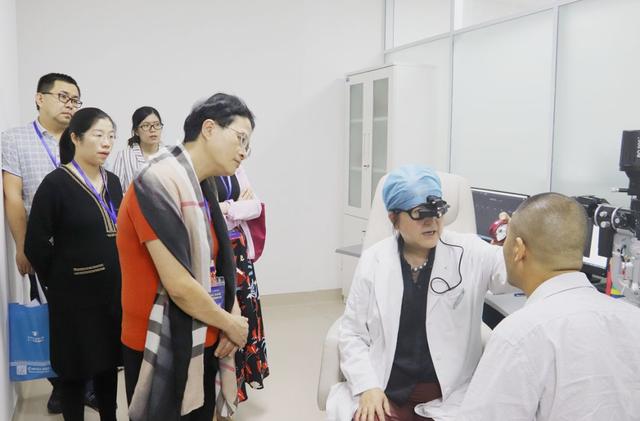 ▲李明翰博士為學(xué)員介紹眼底特檢設(shè)備