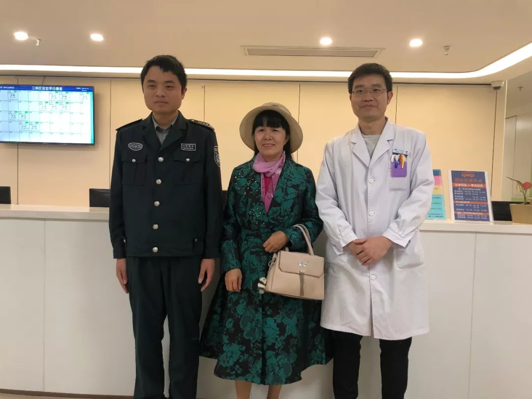 9日下午,故事里的主人公張瓊花女士特地從泉州趕回廈門,向廈門大學(xué)附屬?gòu)B門眼科中心保安部巡邏崗保安萬(wàn)志豪、眼外傷專科李海波博士表示感謝。