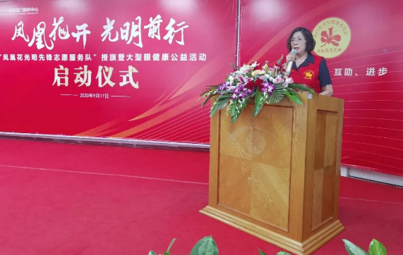 廈門市衛(wèi)生健康委員會機關(guān)黨委專職副書記、直屬黨委副書記王萍為廈門眼科中心“鳳凰花光明先鋒志愿服務(wù)隊”授旗,并宣布廈門眼科中心鳳凰花光明先鋒志愿服務(wù)隊正式成立。