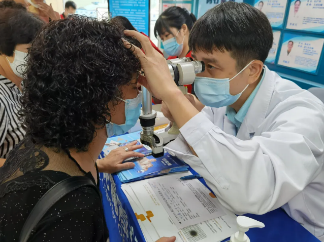 本著“早發(fā)現(xiàn)、早診斷、早治療”的原則,醫(yī)生為前來就診的市民朋友進行視力測試、裂隙燈檢查、測眼壓等眼部基礎(chǔ)檢查。現(xiàn)場他們耐心細致地解答市民朋友提出的關(guān)于眼部疾病方面的各項問題,并為嚴(yán)重眼疾患者提出治療方案。