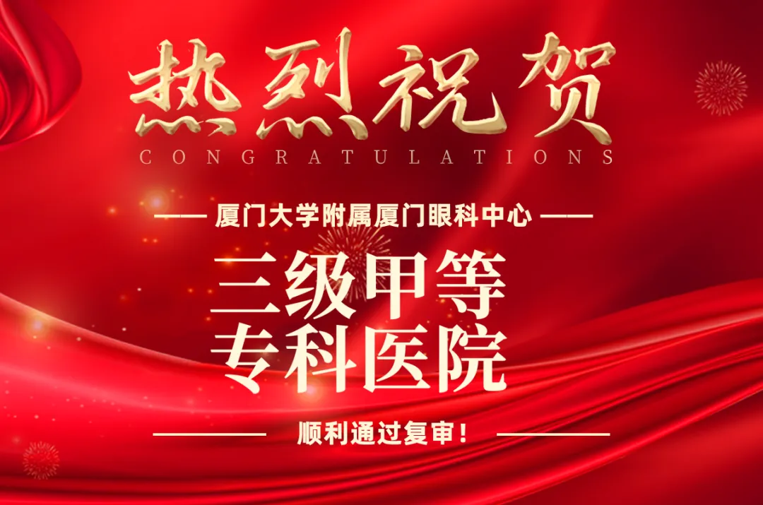 2024年12月31日,福建省衛(wèi)生健康委員會正式發(fā)文,經(jīng)資格審查、現(xiàn)場評審、綜合評分、結(jié)果公示,確定廈門大學(xué)附屬廈門眼科中心(以下簡稱“廈門眼科中心”)為三級甲等??漆t(yī)院。廈門眼科中心2004年被評為“三甲”醫(yī)院后,此次順利通過“三甲”復(fù)審。