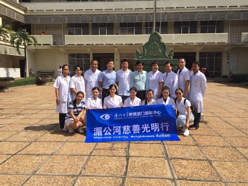 2016年10月21日,科室跟隨柬埔寨光明行先遣醫(yī)療組冒著臺(tái)風(fēng)天轉(zhuǎn)道啟程前往金邊,為當(dāng)?shù)?00多名貧困白內(nèi)障患者免費(fèi)施行手術(shù)。用充滿愛與責(zé)任的人文情懷澆灌中柬“友誼之花”。
